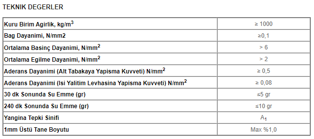 Kaba ve ince siva, beton, tugla vb yüzeylerde polistren ve tasyünü levhalarin yapistirilmasinda kullanilir.